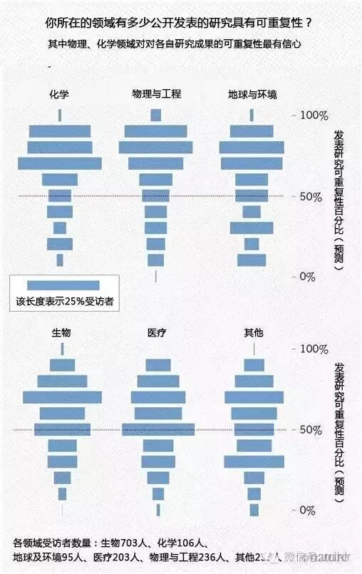 可重復(fù)性可能是“科學(xué)”作為一種方法論被人類接受的核心原因??芍貜?fù)性意味著完成相同的任務(wù)不再受限于執(zhí)行主體,而是一種可被傳授和復(fù)制的內(nèi)容或方法。換句話說,沒有了可重復(fù)性,也就沒有了科學(xué)性。讓我們一起帶著沉重的心情,看看情況到底有多糟吧。超過70%的研究人員在嘗試還原另一位科學(xué)家的實(shí)驗(yàn)中失敗,一半以上甚至不能還原自己的實(shí)驗(yàn)。自然科學(xué)雜志對1576名研究人員進(jìn)行了簡短的在線問卷調(diào)查。以下數(shù)據(jù)表明了他們對于再現(xiàn)研究成果的看法。數(shù)據(jù)顯示,研究人員對于研究的可重復(fù)性持矛盾態(tài)度。雖然52%的受訪者都認(rèn)為當(dāng)下存在顯著的“可重復(fù)性危機(jī)”,而且有不到31%的人認(rèn)為不能“重復(fù)”公開發(fā)表的結(jié)果,可能說明該結(jié)果并不正確。但是大多數(shù)人表示仍然相信公開發(fā)表的研究文獻(xiàn)。其實(shí)人們并沒有太多途徑可以去了解到底有多少科研文獻(xiàn)的結(jié)果是可重復(fù)的。我們所知的分析材料顯示,在心理學(xué)和癌癥生物學(xué)領(lǐng)域,分別有約40%和10%的研究具有可重復(fù)性。然而我們的受訪者卻樂觀得多:73%的人表示,他們認(rèn)為各自領(lǐng)域的論文至少有一半是可信的,其中物理學(xué)家和化學(xué)家普遍對此具有信心。對此問題的調(diào)查結(jié)果令人感覺十分困惑,約翰霍普金斯大學(xué)彭博學(xué)院(Johns Hopkins Bloomberg School of Public Health inBaltimore)的微生物學(xué)家阿圖羅·卡薩德瓦利(Arturo Casadevall)說?!爱?dāng)下研究人員對于可重復(fù)性的定義還沒有達(dá)成共識(shí)?!眱H僅是認(rèn)識(shí)到這一點(diǎn)已經(jīng)是一大進(jìn)步了,他說?!跋乱徊揭鞔_問題的根源,并取得共識(shí)。”長期關(guān)注科研成果可重復(fù)性的學(xué)者,英國布里斯托爾大學(xué)(the University of Bristol)的生物心理學(xué)家馬庫斯·穆納佛(Marcus Munafo)說,無法還原研究結(jié)果就像是科學(xué)家的成年禮?!拔以瓉砩蠈W(xué)的時(shí)候,總是試圖重做一些文獻(xiàn)中提到的,看起來很簡單的實(shí)驗(yàn),卻無法做出與之相同的結(jié)果。然后,我就開始懷疑文獻(xiàn)的真實(shí)性,我后來才知道,不只我一個(gè)人遇到過類似問題?!?/span>學(xué)界所面臨的挑戰(zhàn)不是解決已發(fā)表的研究的可重復(fù)性問題。處于科學(xué)的前沿意味著有時(shí)你的研究結(jié)果并不健全,穆納佛說。“我們想要新的發(fā)現(xiàn),而不是帶來誤導(dǎo)。”但是,從研究結(jié)論中擇除誤導(dǎo)性內(nèi)容并非易事。在我們調(diào)查的研究人員中,雖然絕大多數(shù)未能還原實(shí)驗(yàn),但是只有不到兩成受訪者表示有其他研究人員聯(lián)系過他們,詢問無法重現(xiàn)他們的實(shí)驗(yàn)成果的原因。我們的調(diào)查結(jié)果與另一項(xiàng)調(diào)查驚人的相似,美國細(xì)胞生物學(xué)學(xué)會(huì)對近900個(gè)成員同樣進(jìn)行了在線調(diào)查(見go.nature.com/kbzs2b )??赡苁且?yàn)檫@個(gè)話題難以啟齒,抑或是試圖還原實(shí)驗(yàn)的研究員害怕遭到白眼或指責(zé),同時(shí)也有泄露自己項(xiàng)目內(nèi)容的風(fēng)險(xiǎn),他們往往不愿意向成果的最初發(fā)布者求助。也有少數(shù)受訪者表示他們曾嘗試過發(fā)布重復(fù)實(shí)驗(yàn)的研究結(jié)果。當(dāng)他們發(fā)現(xiàn)前人的成果不具備可重復(fù)性時(shí),他們往往認(rèn)為其中一定有什么原因(一般都不是什么有用的原因)。業(yè)內(nèi)還有些潛規(guī)則,發(fā)表驗(yàn)證他人成果的研究,酬勞大都很少。期刊又不太愿意發(fā)表質(zhì)疑他人結(jié)果的研究。實(shí)際上,還有些受訪者表示,他們發(fā)表過論述前人成果無可重復(fù)的研究,但是期刊編輯和評論員希望他們在自己的研究中盡量少與原有結(jié)論進(jìn)行比較。盡管如此, 24%的受訪者表示,他們發(fā)表過驗(yàn)證型實(shí)驗(yàn)的研究,13%曾發(fā)表過驗(yàn)證失敗的文章。而從論文的被拒率來看,質(zhì)疑可重復(fù)性的論文比較容易被發(fā)表:只有12%的人的驗(yàn)證成功文章被拒;而質(zhì)疑可重復(fù)性的論文被拒的則更少,只有10%。來自得克薩斯理工大學(xué)健康科學(xué)中心(the Texas Tech University Health Sciences Cente)的受訪者亞伯拉罕·艾哈邁德(AbrahamAl-Ahmad)曾提交過一份手稿,解釋為什么他嘗試還原的一種干細(xì)胞技術(shù)不能正常運(yùn)作。他以為會(huì)遭到回絕,但驚喜的是,該文章居然過審。究其原因,他認(rèn)為,可能是因?yàn)樗峁┝酸槍υ搯栴}的解決方法。剩下的人認(rèn)為發(fā)表重復(fù)性研究的關(guān)鍵在于運(yùn)氣、毅力和審稿編輯的喜好。藥物開發(fā)顧問邁克爾·亞當(dāng)斯(Michael Adams)說,他的研究顯示,基于動(dòng)物模型的糖尿病研究存在嚴(yán)重缺陷,這篇文章已經(jīng)被拒絕了六次,部分原因是它沒有提出新的藥物靶標(biāo)。然而,他駁斥化合物治療恰加斯?。–hagas)功效的文章就很快通過了。三分之一的受訪者表示,在過去的五年內(nèi),他們的實(shí)驗(yàn)團(tuán)隊(duì)已經(jīng)采取具體步驟,以提高研究成果的可重復(fù)性。這些表示改進(jìn)了的團(tuán)隊(duì)以藥學(xué)領(lǐng)域的居多,高達(d