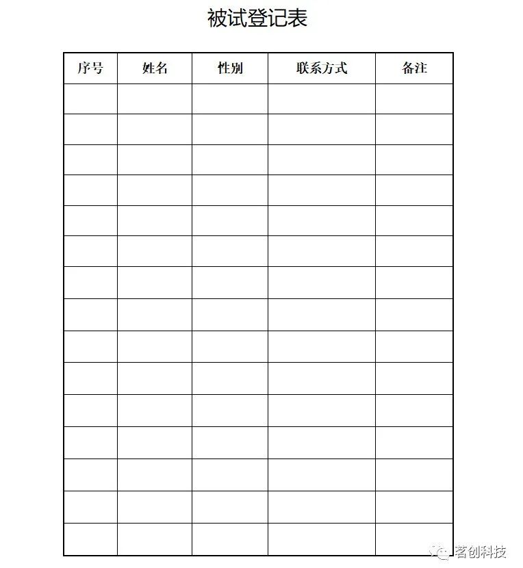 被試登記:將愿意前來(lái)參與實(shí)驗(yàn)的被試登記在《被試登記表》上,如下表所示。