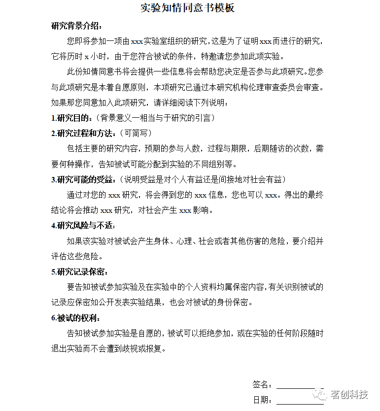 簽署知情同意書:讓被試簽署知情同意書,這是實(shí)驗(yàn)的必備步驟,也是以后在論文發(fā)表過(guò)程中須寫明的一步。